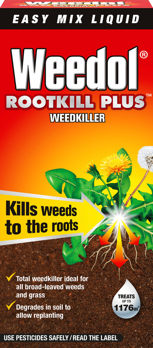 Original price £12.99 - Original price £12.99Original price£12.99£12.99 - £12.99Current price £12.99Weedol® Rootkill Plus™ (Liquid Concentrate Tubes) kills weeds to the root. It is a total weedkiller for all broad-leaved weeds and grass and is use...