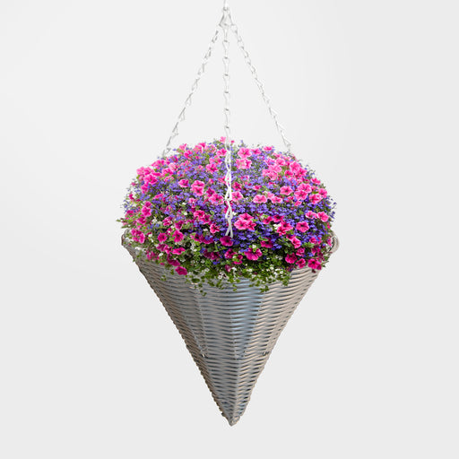 12" Cone Willow Hanging Basket - Grey