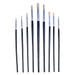 - Sizes imprinted on each brush (1 - 9)