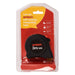 Plastic body tape measure with self locking blade with push button for blade retrieval. Push button is ergonomically situated for thumb operation. Comes with belt grip for ease of use.