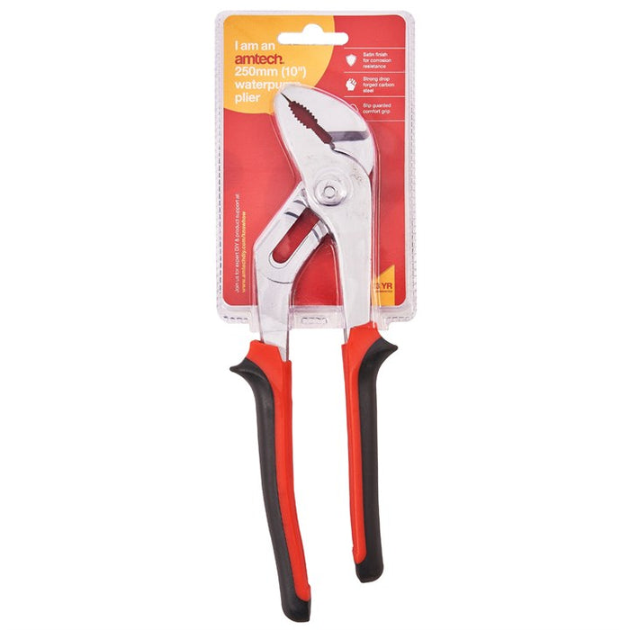This 250mm (10") water pump plier is made from drop forged carbon steel with a satin finish for durability.